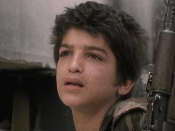 While the narration of the film laments a past never to return, Saab’s camera remains focused on the present circumstances of Beirut’s people. Life and death are always in the same frame. Children inhabit the streets as if they are newly created yet desecrated playgrounds, playing in polluted waters while corpses lay on the beach. People frequently walk past the camera sporting AK-47s along with flowers. In one moment, a trio of grenades are seen cradling a deck of cards placed upon a chair, both items ready to be used by a nearby group of young men and boys in case either leisure or lethality find them. It is almost always true that the people holding the weapons aren’t much bigger than the guns themselves. “The older the war gets, the younger the fighters are becoming," Saab remarks despondently.
